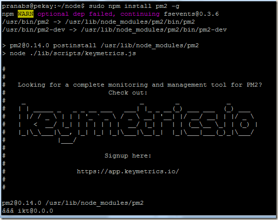 sudo env PATH=$PATH:/usr/bin pm2 startup ubuntu -u pranabs
